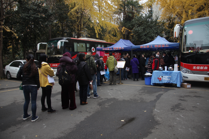 2017年12月14日,由四川省献血领导小组办公室、成都市献血领导小组办公室联合主办,成都市血液中心承办的“定期献血 让爱不断”2017年四川省公务人员冬季无偿献血宣传活动在市血液中心顺利举办。本次活动以倡导“每半年可以捐献一次全血,每14天可以捐献一次血小板”的定期献血理念为主题,省、市献血领导小组成员单位的公务人员及部分医疗卫生单位的医务人员共计300余人参与活动,其中121人成功捐献血液34050毫升。