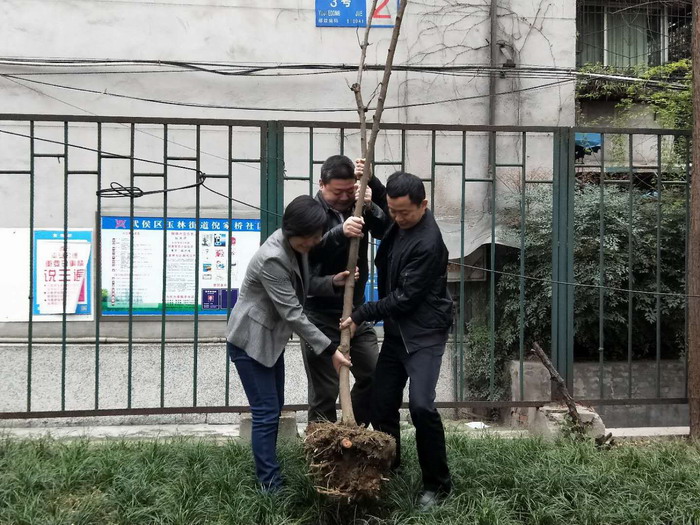 活动中,大家干劲十足,互相配合,在中心主任傅雪梅、党委书记米虹的带领下,挖坑、移栽、 填土、浇水,圆满完成了植绿护绿任务。