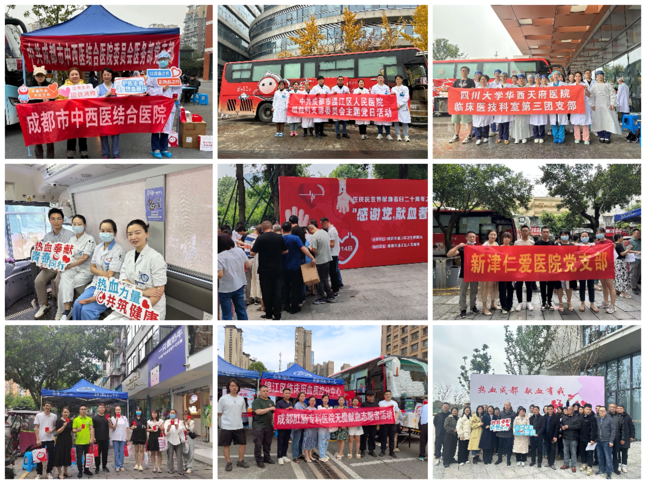 23个区(市)县临床用血质控分中心挂靠单位积极响应号召,截至目前,共开展32次无偿献血活动,2232位医务人员成功献血,累计捐献爱心血液超67.2万毫升,以热血之举践行医者仁心。其中高新、金堂、都江堰、郫都、锦江、简阳、温江、崇州、大邑、新都临床用血质控分中心挂靠单位献血医务工作者超100人。此外,锦江、金牛、成华、新津、都江堰质控分中心等还积极组织辖区医院医务工作者捐献超29.7万毫升爱心血液,体现了全市医务人员的责任和担当,用实际行动诠释大爱无疆。