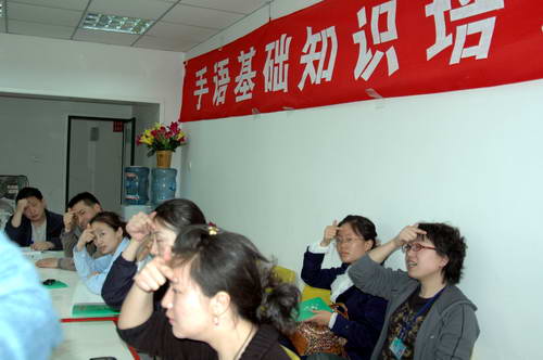 为进一步提高血液中心服务质量和档次,共同营造关心和支持残疾人事业的良好氛围,促进和谐成都建设,血液中心开展了以“沟通无障碍”、“通行无障碍”为主要内容的“无障碍服务”主题教育活动。团总支于4月11日、13日举办了窗口服务人员手语基础知识培训班,来自各窗口科室的代表和“青年文明号”全体成员共18人参加了与聋哑人交流的手语。