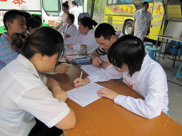 在活动现场,三位同志发挥业务方面的优势,进行了现场无偿献血宣传、指导献血者填表、协助检验人员进行献血前筛查工作等,使团体献血活动更加顺利、有序。