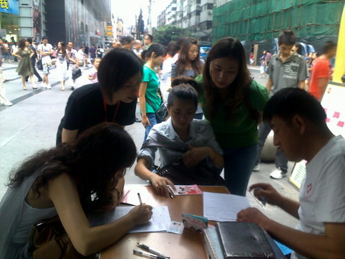 虽然当天气温有所下降,但在下午仍然十分闷热;恰逢周末春熙路人流量较大,从一点到七点的时间里三位同志基本没有时间休息。面对热情的市民,三位同志毫无怨言,始终积极、周到地为市民服务,尽力解答献血者的疑问,维护好现场秩序,使各项工作有条不紊的进行。虽然酷暑难耐,但看到那么多充满爱心的献血者,一股暖暖情意融入心房,大家倍添干劲,更加积极投身到宣传活动中。