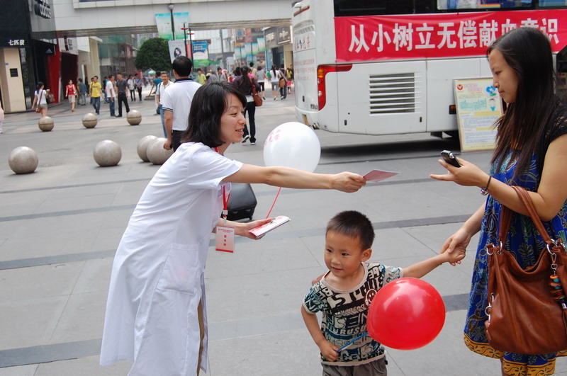 6月1日是国际儿童节,行政党支部按照年度工作计划,与公民献血科党支部在北新街采血点联合开展了“从小树立无偿献血意识”主题宣传活动,行政党支部党员雷晓岚、周健,入党积极分子邓敏,公民献血科党支部书记朱刚、支委周敏、党员李莎和采血2组参加了宣传活动。在宣传现场,大家挂起“从小树立无偿献血意识”红色横幅,摆起桌子、宣传资料等物品,打起气球向小朋友发放,祝贺他们节日快乐,同时递给小朋友或者他们的父母无偿献血宣传资料,让他们学习、了解无偿献血知识,或是请他们带回去给父母等大人,欢迎他们参加无偿献血。献血科党员和职工采血、体检,行政支部的就招募献血者、指导他们填表,为他们服务,整个活动搞得热烈,充满欢乐气氛。共计发放气球、宣传资料200 多份。