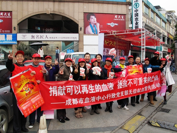 为响应卫生部等六部委关于开展无偿献血宣传月活动的精神,经支部研究,行政支部党员和入党积极分子等,放弃休息日,于12月10日星期六前往天府新区华阳镇进行无偿献血宣传、招募活动,向市民发放无偿献血资料和新台历、年历,招募市民参加无偿献血。