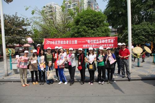 人间四月天,春光明媚,阳光灿烂。4月21日星期六,行政支部组织党员和部分群众来到温江区成都市五医院门口,开展世界献血者日主题宣传活动。之所以选择在医院门口,是因为我们在日常工作中经常接到有关献血和用血退费咨询,在医院门口,党员们能够面对面的给患者及家属进行无偿献血宣传,并对疑问做详细的解答。这次携带的宣传资料弥补了上次在华阳宣传的不足,为了使宣传、招募更有针对性,支部专门制作了印有温江采血的时间地点、捐献机采血小板的地点及电话、用血退费电话和中心网址等相关内容的宣传单。宣传活动中大家还向市民介绍了今年世界献血者日的主题――“每位献血者都是英雄”的涵义和活动目标。确实今天的宣传效果比较好,很多人问我们有关无偿献血各种问题,因为准备比较充分,大家都能给予解答,仅1个多个小时,就向市民发放了300余份资料和纪念品。
