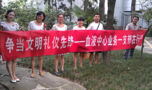 2. 支部组织进行文明礼仪的学习,旨在提高个人修养,展现良好风貌,提升中心对外形象。包括学习个人礼仪、公共场合礼仪、规范文明用语、中心制度规定等内容。我们支部还专门针对我们所在的科室进行了重点文明礼仪的学习。如:保持车内地面干净,工作台面无明显污渍,物品摆放整齐,工作标识醒目正确,公共场所无乱扔杂物、随地吐痰等不文明行为;锦江、青羊献血屋志愿者服务站要保持便民设施完备,功能良好;工作人员均按要求着装,佩戴胸卡,仪容整洁,服务态度热情耐心、认真负责;保证科室咨询投诉电话有效运行,接待人员态度友好、语言文明、业务熟练,能正确回答献血者提出的问题。