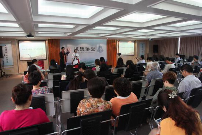 在道德讲堂上,迭敏和杨晴领衔的歌伴舞《礼仪之邦》婀娜多姿、古韵十足;李珊珊所述经典《廉颇和蔺相如》的典故发人深省;熊菲、何程琳将人民的礼仪楷模《周总理的事迹》娓娓道来,罗勋、唐爽、陈茜、张雪莹对《文明礼仪倡议书》的宣读感情充沛、极具感染力。在文明礼仪知识抢答、职业礼仪感想互动、优质服务提高深化、颁发道德吉祥卡等多个环节中,群众和党员们积极参与、畅所欲言,讲堂上气氛热烈,大家获益良多。