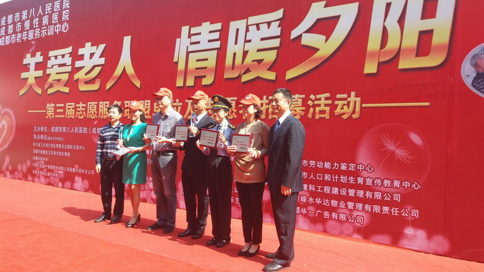 2016年4月28日由成都市八医院正式授牌,将该院作为我中心“关爱老人”志愿者服务基地。授牌仪式后,我中心志愿者前往病区看望了老年患者。他们同老人们坐在阳光棚下聊天,关心他们的饮食、睡眠、身体等状况;他们走到行动不便的老人床旁为他们讲述社会信息、生活趣闻,为老人们平静的日常生活注入活力,让老人会心一笑,得以慰藉。志愿者们还与院方和病区工作人员进行了交流,对他们给予老年患者无微不至的关怀和护理给予支持和鼓励。