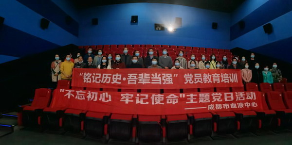 2020年11月11日至12日,成都市血液中心行政党支部、后勤党支部、业务一党支部、业务二党支部、业务三党支部联合组织开展了“铭记历史,吾辈当强”主题党日活动。活动选取形象生动、感人至深的影片《金刚川》为教育题材,共分两批进行,中心中共党员、预备党员和积极分子参加了活动。