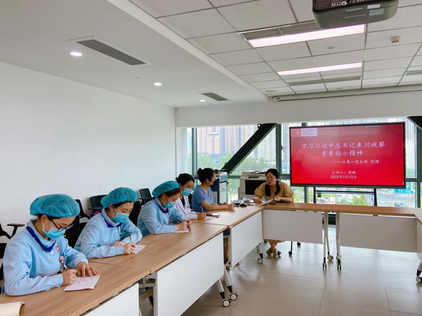 支部书记周敏分别从推进农业现代化、保障粮食安全、乡村振兴、疫情防控、稳增长稳就业、民营企业发展、高校毕业生就业、长江岸线生态环境保护、历史文化遗产保护利用等内容进行了深入讲解,让党员们感受到了党的核心、人民领袖对四川的高度重视和深切关怀,深刻感悟到习近平总书记对四川擘画新篇的立意之深、思量之远。支部党员结合实际纷纷发表自己的学习感悟和心得体会,表示要把思想和行动统一到习近平总书记来川视察重要指示精神上来,要用学习成果进一步武装头脑,在中心党委的领导下,锚定目标任务,增强信心、下定决心,立足岗位,为推动新时代治蜀兴川再上新台阶、全面建设践行新发展理念的公园城市示范区贡献血液智慧和力量。