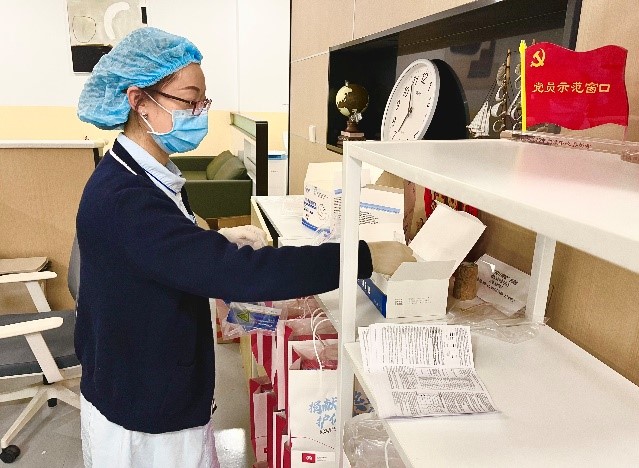 在大面积的新冠病毒感染的情况下,中心本部没有停采一天。为了方便献血者错峰献血,采集一党支部党员主动延长了工作时间。12月31日晚上8点,夜幕降临,血液采集一科仍然灯火通明。在许多人还沉浸在跨年的热烈气氛中时,采集岗护士黄兴丽刚刚送走了今日最后一名献血者,和同事做好收尾工作后,又开始为第二天的工作做准备。结束长达12个小时的工作后,她才坐下来拿出手机拨通了家人的电话。她有一个上高三的儿子和一个年仅6岁的女儿,儿子最近也因为感染新冠病毒高烧不退,但她说,“虽然很愧疚不能陪伴和照顾孩子,但自己作为一名老党员,现在正是组织需要我的时刻,更要挺身而出,我们多采一袋血液,就为亟待用血的患者多送去一份希望。”