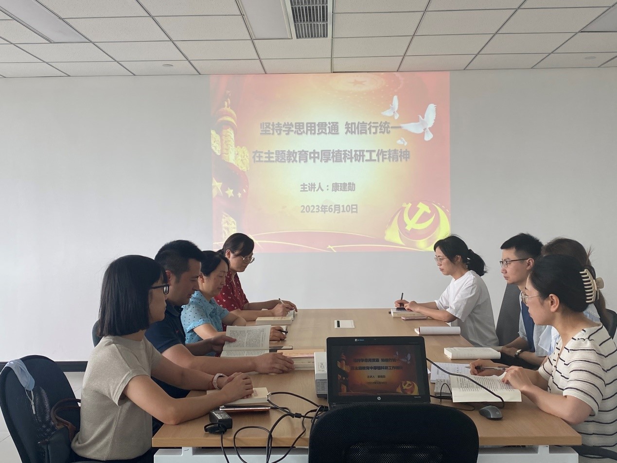 6月10日,血研党支部开展学习贯彻习近平新时代中国特色社会主义思想主题教育专题党课。中心党委委员、副主任康建勋以“坚持学思用贯通、知信行统一,在主题教育中厚植科研工作精神”为题,为支部党员讲主题教育专题党课。