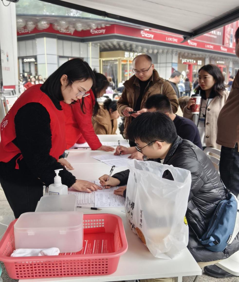 支部书记顾小波和组织委员邓岚主动请缨,参加春节期间志愿服务活动。高新环球、锦江春熙、暑袜中街……几个献血屋都留下了他们热情又忙碌的身影。像这样的互帮互助也在这座城市大大小小的献血点持续接力。大年初一初二李瑾、大年初七闫小立,以及几位新员工,他们都在自己的岗位上洋溢着青春的热情,传递着这个城市的热血精神。