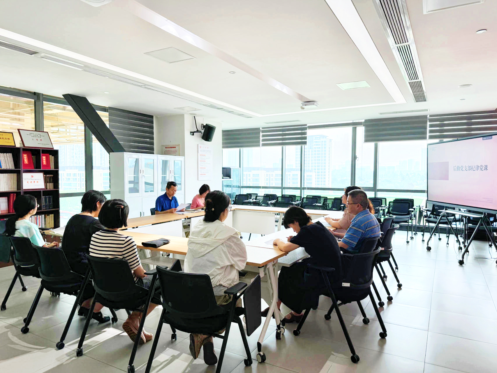 在庆祝中国共产党成立103周年之际,根据市卫健委关于开展党纪学习教育的部署要求和中心党委安排,6月18日,后勤党支部召开党员大会,中心党委委员、副主任高加良,支部书记褚晓分别作党纪学习教育专题党课,支部全体党员参加。