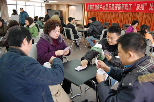 在新年即将到来之际,我中心工会于2009年12月21日下午,在中心六楼多功能厅,举行了成都市血液中心第五届迎新年职工“双抠”比赛。