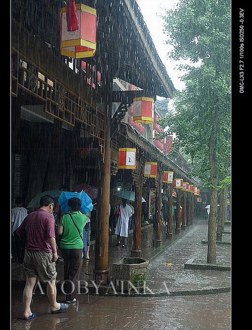 2010年7月25日上午8点30分,我中心摄影小组一行9人,利用星期天休息时间,乘车来到古镇黄龙溪进行了一次雨天的采风拍摄活动。尽管天空不停地下着大雨,但摄影小组的成员们仍然兴致勃勃地举起手中的相机抓拍这难得的古镇雨景。被大雨洗礼过的古镇显得格外清秀和别样的情趣,空气也十分清新。虽然大家的衣服被大雨淋湿了,但还是觉得很开心。