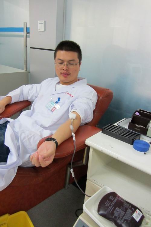 由于之前对献血知识不了解,加之又是第一次献血,虽然1米8几的大个,对献血还是有点hold不住。在了解了近期血液供应紧张的情况后,在机采室各位老师对血液知识和献血常识的细致讲解和鼓励下,刘佃雨同志坦然上阵。采血护士娴熟的技术完全打消了他的顾虑,成功献出400ml热血,并以自己的献血感受,现身说法,向献血员宣传献血的知识,为献血员作好优质服务。