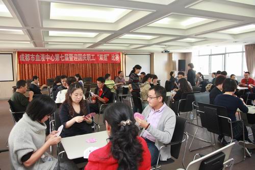 为迎接国庆节的到来,我中心工会于2011年9月29日下午在六楼多功能厅,举行了成都市血液中心“迎国庆暨第七届职工‘双抠’比赛”。