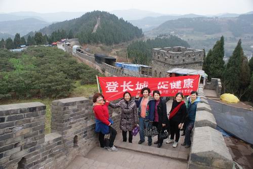 午饭后,女同胞们兵分两路,一路女职工乘车来到金龙长城脚下,开始了攀登长城的活动。大家沿着山峦起伏的长城之道,一边观看四周的秀丽景色、一边向长城之颠行进,尽管道路曲折艰难,但姐妹们不惧困难,勇于攀登,经过一个多小时的艰苦行程,终于攀到了终点。站在长城之颠,大家兴奋不已,纷纷拍照留影,从她们的脸上露出了胜利者的喜悦和笑容。