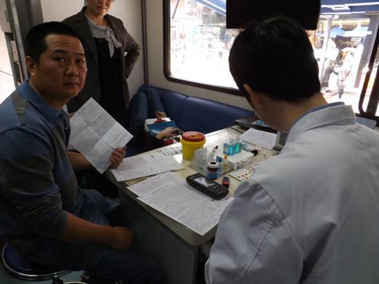 我跟随外采8组准点到达北新街采血点,那里高校爱心志愿者服务队的同学和爱心大使杨秀伟、熊德金还有很多准备参加无偿献血的志愿者已经在采血屋旁等候了,我们火速开工,采血工作井然有序进行。