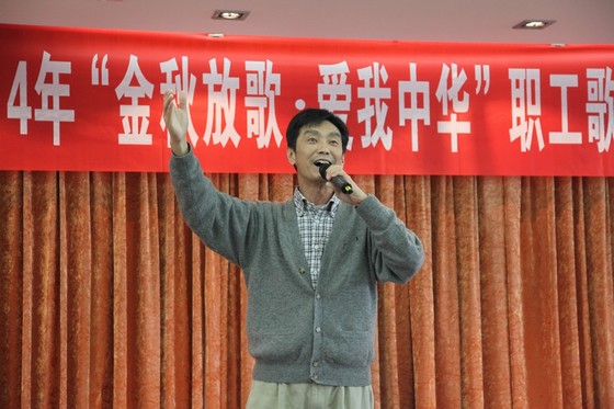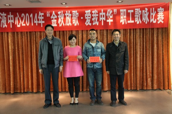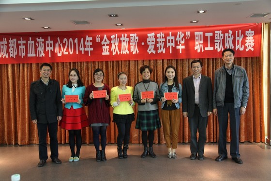 “正宗好工会,正宗好声音,欢迎大家参加由成都市血液中心工会为您举办的中心好声音之“金秋放歌・爱我中华”职工歌咏比赛。你可以鼓掌,或者呐喊以及尖叫你喜欢的学员名字参与节目互动,还可以手舞足蹈观看节目的精彩内容,或手持你们的三星、小米、iphone进行现场录音,留下您最喜欢的歌曲彩铃……”,借用《中国好声音》主持人华少的经典台词,成都市血液中心工会举办的“金秋放歌・爱我中华”2014年职工歌咏比赛“登场亮相”了。