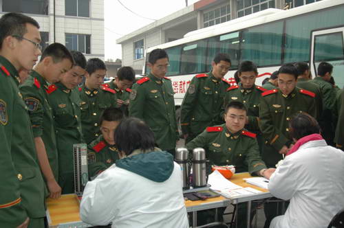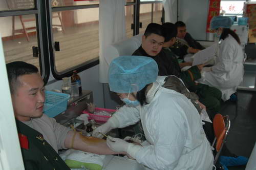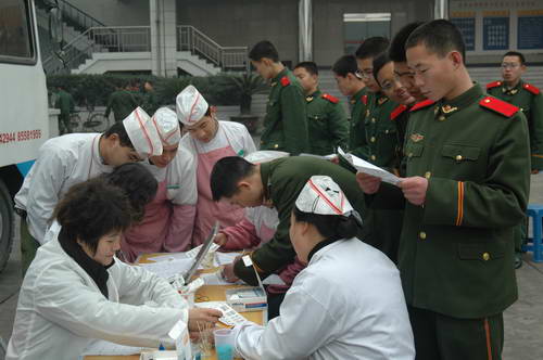 为了使成都市人民过好春节,四川武警指挥学院、四川省武警总队直属支队官兵积极参加无偿献血,为成都市人民献上了一份温馨的节日礼物。