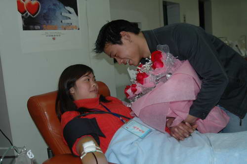 上午10点,成都市血液中心机采室春意融融,长发批肩的姑娘代艳梅正在献成分,旁边坐着的手里捧一束鲜艳的玫瑰花,两人说着悄悄话,不时飘出细碎的笑声。代艳梅说:“其实我俩的感情是献血巩固起来的!”