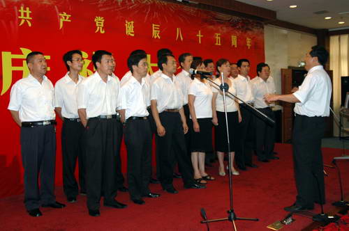 由六个党支部组队的科室党员和群众组成的参赛队,进行了庆 “七.一”歌咏比赛,并由各支部推荐的一名评委进行打分评比。歌咏比赛始终充满着歌颂中国共产党、歌颂祖国、歌颂“八荣八耻”等,通过一曲曲充满对党、对祖国深情的表演,不时博得场下阵阵的掌声!最后经过评委评比,业务一党支部获得一等奖,行政党支部、业务二党支部获得二等奖,业务三党支部、后勤党支部、获得三等奖。