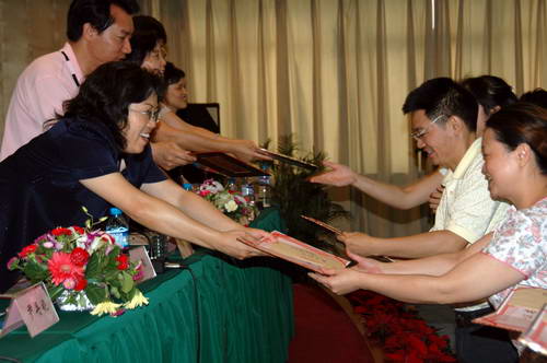 为坚持“科教立站、科教兴站、科教强站”的战略发展目标,促进和提高中心科教工作,血液中心于2006年8月4日在成都安全输血培训中心举办了第八届学术年会。来自省卫生厅、市卫生局以及各兄弟血站的代表应邀参加了此次学术年会。在会上,中心领导总结和回顾了2004-2005年度的科研工作;对优秀的科研课题项目人进行了表彰。优秀科研课题的负责人还在会上与参会的同志进行了学术交流。