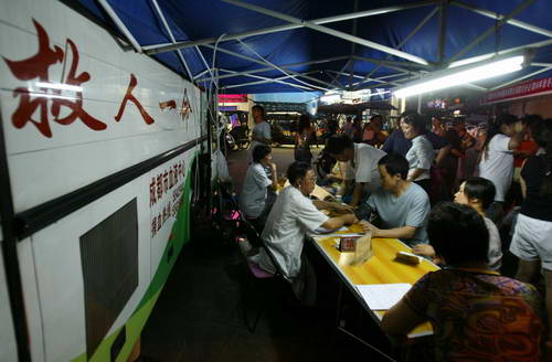 夜幕中 成都市民排队献血