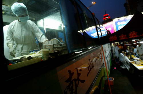 8月4日下午5点半,当成都市血液中心采血车驶进位于春熙路北新街口时,车上的工作人员被眼前的一幕感动了:10多名市民自觉排队等候献血!这个临时开通的夜间采血点在短短的5个小时,献血者就达53人,相当于夏季平日这个采血点一天的献血量。