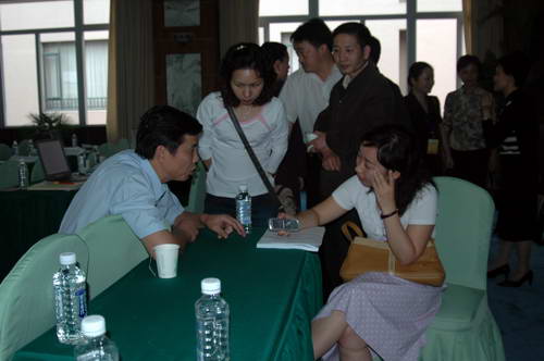 学习班进入第二天,终于迎来了第一次活动,为了把活动作得生动有意义,教务长和教务组在前一天晚上召集了每个小组的组长和联络员,首先大家相互认识,活跃了气氛, 为第一次的活动作了详细的布置,为活动作好了铺垫,特别是在活动的方式上作了较大的改动:一改原来的几组同做一个活动的方式,变成两组同做两个活动,各有侧重点,汇报时一个重点汇报一个组补充,每一个组汇报不同的活动,充分调动学员的积极性,每组作业汇报后,学员可以进行补充,教员也对汇报做简短的总结。