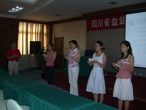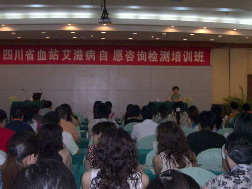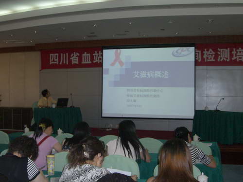 2007年6月27日--- 29日成都市血液中心举办了省级继续医学教育项目“四川省无偿献血VCT知识/技能培训班”。培训班在安全输血成都培训中心举行,来自全省19个中心血站的招募、体采、院感和检验人员共计130人参加了此次学习。这次培训班的内容涉及艾滋病相关知识; VCT免费检测方法;如何提供咨询,针对不同检测结果的咨询方法和技巧等,旨在提高血站相关工作人员对无偿献血初次献血者或前来咨询者进行艾滋病自愿咨询检测(VCT)的知识和技能。本次培训得到了四川省疾控中心性病、艾滋病预防/控制所的大力支持,他们派出了包括副所长周久顺在内的四名专家前来授课,保证了这次培训班的质量。