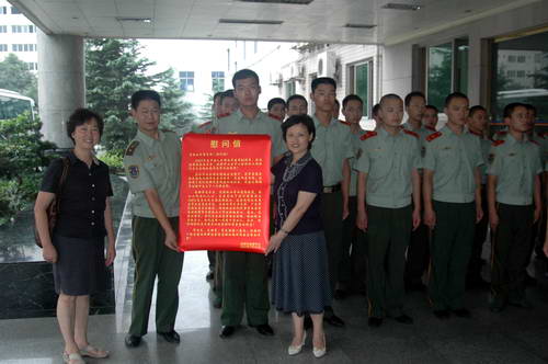 今年是中国人民解放军建军80周年,在这个值得欢庆的日子来临之际,7月31日,成都市血液中心主任王乃红、党委书记尹丹妮一行9人,代表成都市血液中心全体职工到武警四川省总队及直属支队、成都支队和武警成都指挥学院进行了亲切的慰问,他们带去了充满着对人民子弟兵热情洋溢感情的慰问信,送去了牛奶1300件,诚挚感谢他们每年对成都市无偿献血工作的大力支持和积极参与。