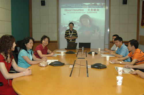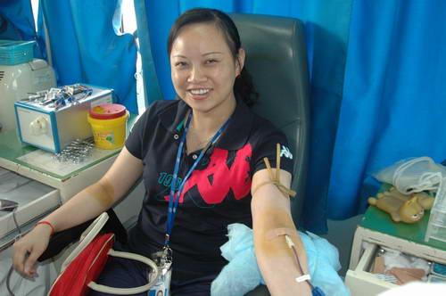 一大早,英特公司门前就醒目的摆放着一辆流动采血车。在公司的休息大厅和采血车前人头攒动,有的忙着填表,有的忙着体检,有的已经面带微笑的走上了采血车准备献血。他们都是英特公司的员工们。他们中有普通员工,也有公司管理层的领导;他们中不仅有我们的公民,还有来自马来西亚的外籍人士;他们有的是多次献血,也有第一次加入到无偿献血行列中来的。但他们都有着一颗感恩社会的心,都怀着奉献爱心,挽救生命的共同愿望走在了一起。