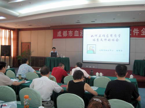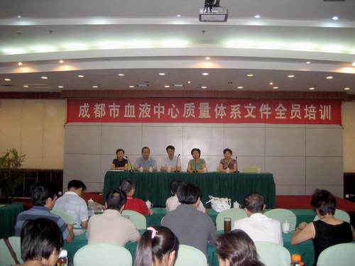 2007年8月3日、8月6日,成都市血液中心分两批在安全输血培训中心举办了贯彻《血站管理办法》、《血站质量管理规范》、《血站实验室质量管理规范》和中心质量体系文件的全员培训,包括彭州采血队在内的230人参加了培训学习。