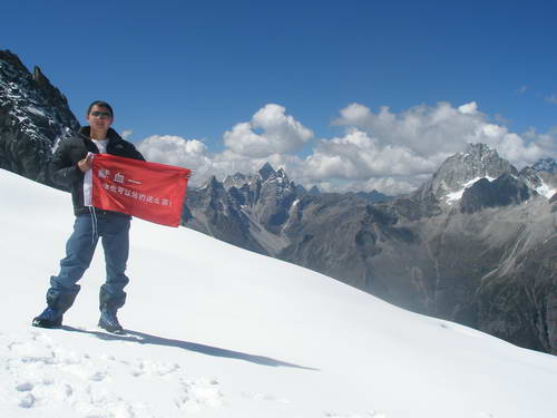 当旗帜飘扬在那雪山之巅时,武斐蔚展示的不仅是成都市血液中心员工的精神风貌;作为普通献血者一员的他,更是通过这样的行动表明--献血,你也可以站的这么高!