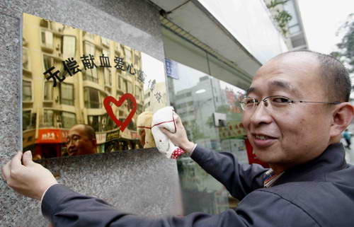 传爱心 鲜花店挂牌宣传无偿献血