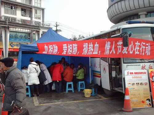 昨天是“情人节”,为使情人节更加温馨、浪漫,祝福人们幸福平安。成都市血液中心和我队特意为献血者准备了巧克力和玫瑰花,为他们献上诚挚的祝福,一对对情侣携手而来,希望用自己的热血表达彼此的爱意。一位烯有血型的献血者,春节回家休假,得知临床用血紧张后,特意和恋人赶到彭州市广场献血。当天在彭州市广场和都江堰市水文化广场,共有62位爱心人献血20600ml。血相融,爱相随,捐热血,情人节爱心在行动,虽是在寒冷的冬日,而浓浓的暖意却在人们中间流淌。