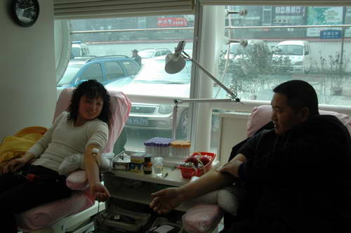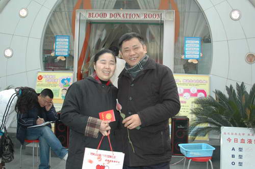 昨日,在成都的锦江爱心献血屋,一半以上的献血者都是夫妻或年轻的情侣。一大早,年旬50的唐德芳就和丈夫携手来到献血屋,第一次参加无偿献血的她说,结婚二十多年,从未和丈夫过过情人节,这次打算用献爱心的方式来过一次情人节。廖谧是成都市血液中心的职工,昨天也和丈夫冯松一起来参加无偿献血。冯松笑着说,“一起来献血过情人节既奉献了爱心,又支持了爱人的工作,这比送她什么更好。”李光荣和苟晓燕等四对夫妻则是带着孩子一起来献血,他们纷纷表示,一起献血来过情人节,向社会奉献自己的爱心很有意义,带着孩子来,虽然孩子尚幼,还不能献血,但给他们树立了榜样,教育了他们要有爱心,要有奉献精神。而在一家娱乐公司上班的史勇红在情侣、夫妻相约来献血的人群中略显孤单,他说独自一人前来是要回去给女友一个惊喜,“如果对社会没有爱心,怎么保证对自己的爱人有真爱呢?我要以这种方式告诉她,她未来的丈夫是值得依靠的。”