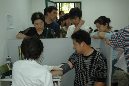 省委办公厅的领队、纪委书记李前省告诉记者,自汶川发生强烈地震后,牵动了省委办公厅广大干部职工的心,办公厅在搞好省委抗震救灾服务工作的同时,组织干部职工向灾区捐款、捐物、献血。干部职工报名献血的热情空前高涨,有些同志50多岁还积极报名。他们想通过献血向灾区人民表达自己的深情厚谊。办公厅26岁的秘书余自游献血200毫升,他说我想用这种特殊的方式来支援灾区人民。