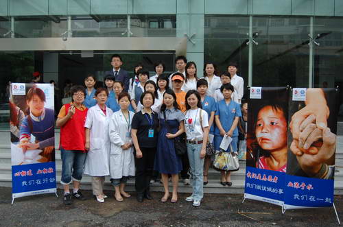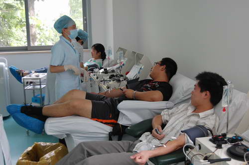 今日上午9:00中国移动成都分公司共青团组织团员100多人来到成都市血液中心踊跃捐献血浆,为抗震救灾尽一份心意,献一份爱心。