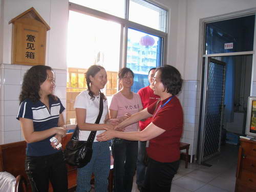 在彭州采血队,大大小小的药品已堆满工作楼前的空地,工作人员紧张、有序的开展着工作。尹丹妮书记和唐莉副主任上前亲切的慰问了在一线的工作人员,将牛奶和矿泉水等物资送到了他们手上,并嘱咐他们一定要好好保重身体。负责人倪斌介绍说,现在送往彭州的赈灾药品全部存放在血站,由他们统一调配送往彭州的医院和卫生院,由于工作任务繁重,采血队的很多工作人员已经连续多日坚守岗位,没有回过家。