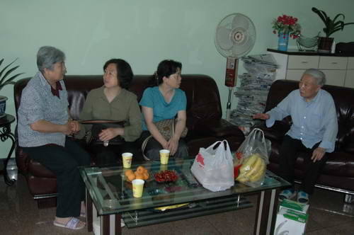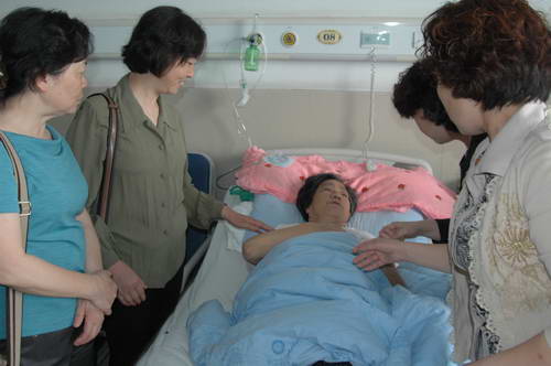 昨日下午下班后,刚刚开完会的成都市血液中心领导和中层干部代表一行六人前往415医院外科住院部,慰问了公民献血科职工徐娅玲的母亲,带去了牛奶、水果及全中心职工的深情厚谊,徐母是在江油地震中手脚以及胸部被屋顶上的预制板砸伤,第二天被家人送往成都的,徐娅玲知道消息后仍然坚守在工作岗位上,直到下班才赶往医院。徐母对中心领导的慰问非常感激,并要求徐娅玲上好班,为抗震灾区努力工作。随后领导们又去慰问了职工郭沁川的父母,郭的小弟弟因公在地震中牺牲。中心领导的亲切慰问使郭沁川和她的父母感受到了组织的温暖、人间的真情。