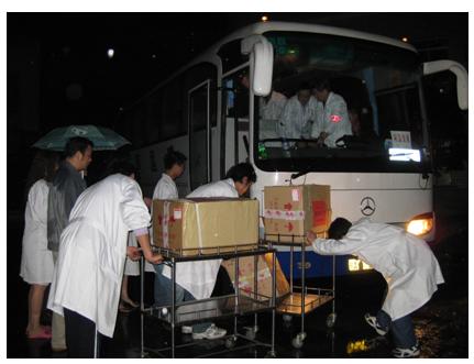 血品科的职工以及从成分科、体采科抽调的数名工作人员在科长刘晓梅的带领下,开展了紧张的储、发血工作。晚上,当得知卫生部和省卫生厅将向给我市调配、调剂血液后,血品科应急储发血队的全体工作人员一直都在科室待命,等待接收该批血液。截止5月13日晚12时,经省卫生厅审批同意从省内兄弟血站(成都市血液中心、眉山市中心血站、宜宾市中心血站)调剂的细胞成分血140200ml、血浆179950ml;卫生部(北京市红十字血液中心、太原市红十字血液中心、江苏省血液中心)调配至我站的细胞成分血242000ml、血浆11800ml陆续送达我站。站领导和应急储发血队的相关人员立即进行血液交接和入库工作,整个血液入库贮存工作持续到次日凌晨3点完成。