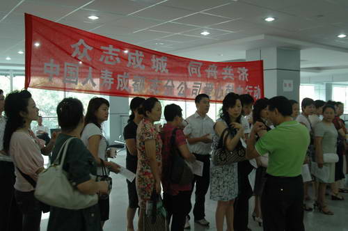 中国人寿保险股份有限公司成都市分公司是一个有责任感、有爱心的企业,多年来积极参加无偿献血活动,这次地震他们也是在灾区第一线开展理赔业务,为灾区人民出一份力,尽一份心。当天他们有164人献血。