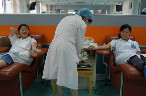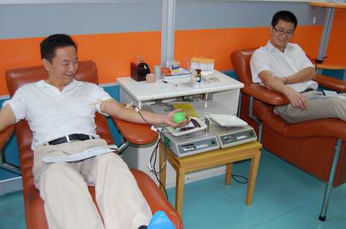 7月23日上午,中心的献血接待室里站满了前来献血的志愿者。走进一看,发现原来这批志愿者们是我们成都市血液中心的工作人员。他们在得知A型血紧缺,血液库存量下降的消息后,纷纷带头挽起袖子献出自己的鲜血。