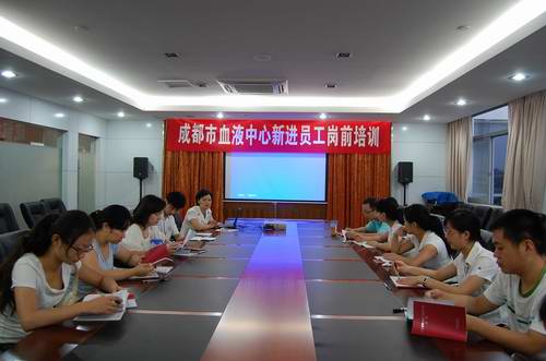 2009年7月30日,成都市血液中心组织了对2009年新进12名员工的岗前培训工作。