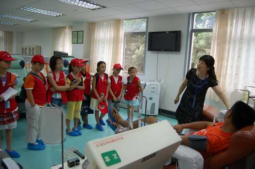 带队的老师说,这些孩子都是利用暑假来进行社会实践,之所以带他们到血液中心来学习参观,一方面是让他们学习怎样当记者,另一方面也是让他们了解无偿献血,做一个有爱心有社会责任感的人。