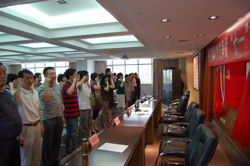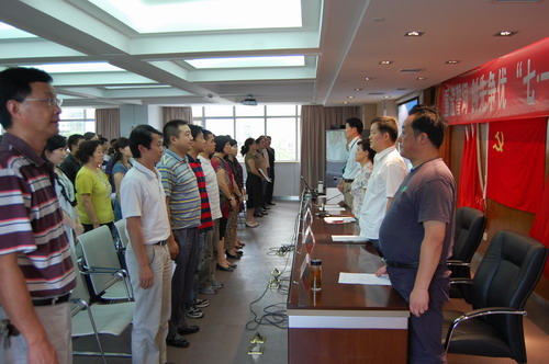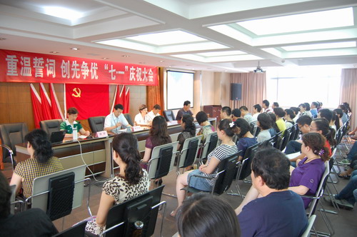 2010年7月1日下午14时,血液中心在六楼大会议室隆重举行了“重温誓词 创先争优 ‘七一’庆祝大会”,中心党员、职工共计105人参加了会议。